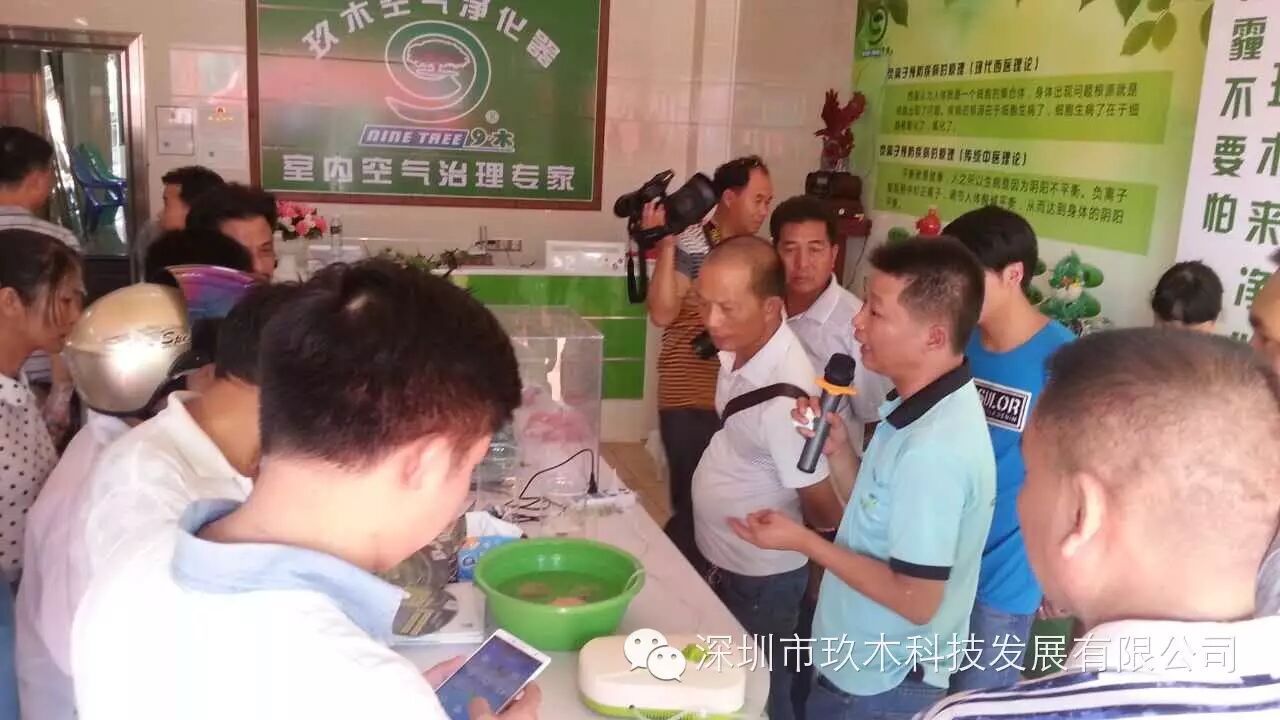 玖木科技的董事长刘建华和总经理吴昕从深圳赶来祝贺,现场详细讲解了玖木空气净化器净化空气的独特优势,多家媒体及机构光临参观报道.
